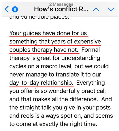 A key to being able to do this is the frequency that we "check-in" with each other. When you are in a challenging season, you have to dramatically increase you frequency of these check-ins and understand where the other stands in regards to connection, love, openness of communication, and where your satisfaction is dropping; all while not taking it personally and changing your individual actions regularly to continuously raise all of these scores.